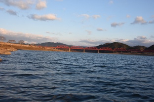 1月13日朝、四万十川下流より赤鉄橋を望む。