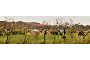 枝もたわわに柿の実の地へとどき(種田山頭火)