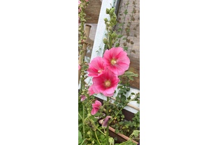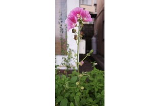 タチアオイも迷わせる梅雨明け、遠くないのは間違いありません。最近の夏はほんとうに暑いので、まだまだ大変な時期が続きますが、時には迷いながらも、暑さを乗り越えまっすぐに、可憐に花を咲かせるタチアオイのように、きりりと過ごせたらと思ったことでした。