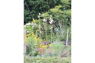 ちなみに一番下の写真は、同じ7月9日に、愛南町某所で撮影したタチアオイです。下のほうからからてっぺんまでいろいろに咲いていました。愛媛のほうが雨は多かったので、タチアオイも混乱しているのかも知れませんね。
